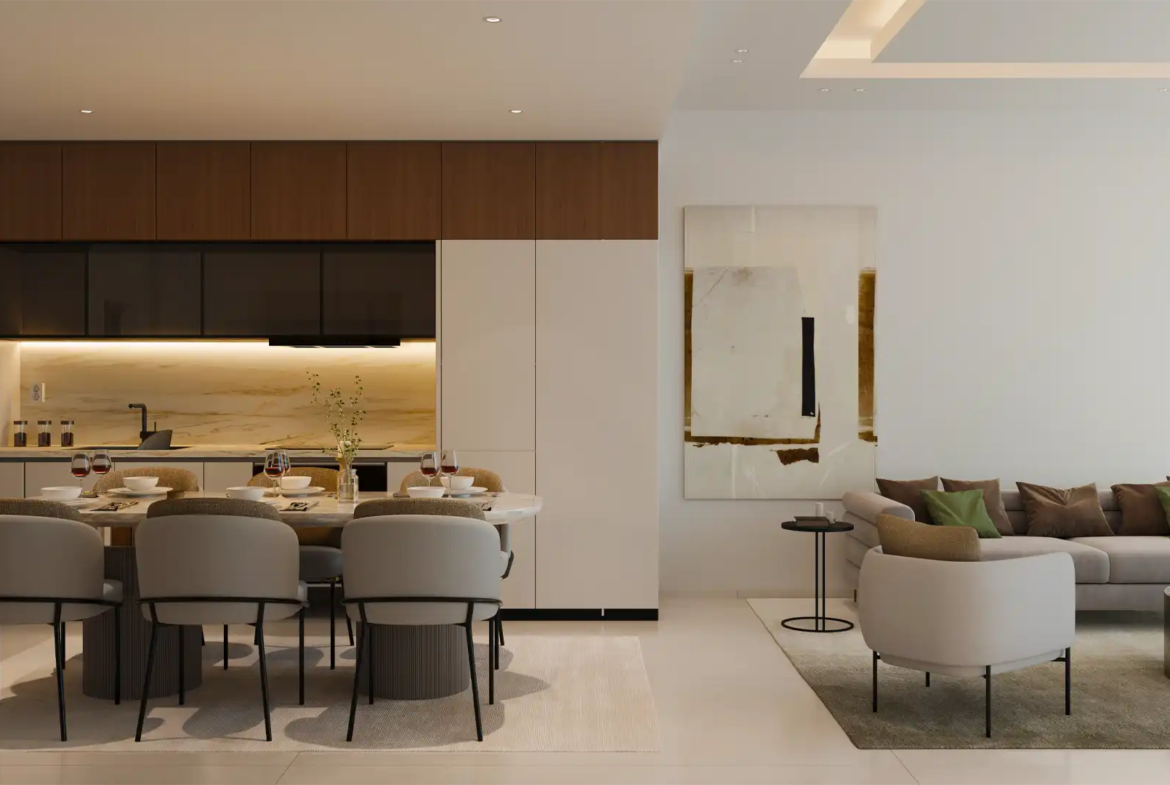 - دوخوابه: متراژ 1,050 – 1,350 فوت مربع | قیمت شروع از 1,100,000 AED